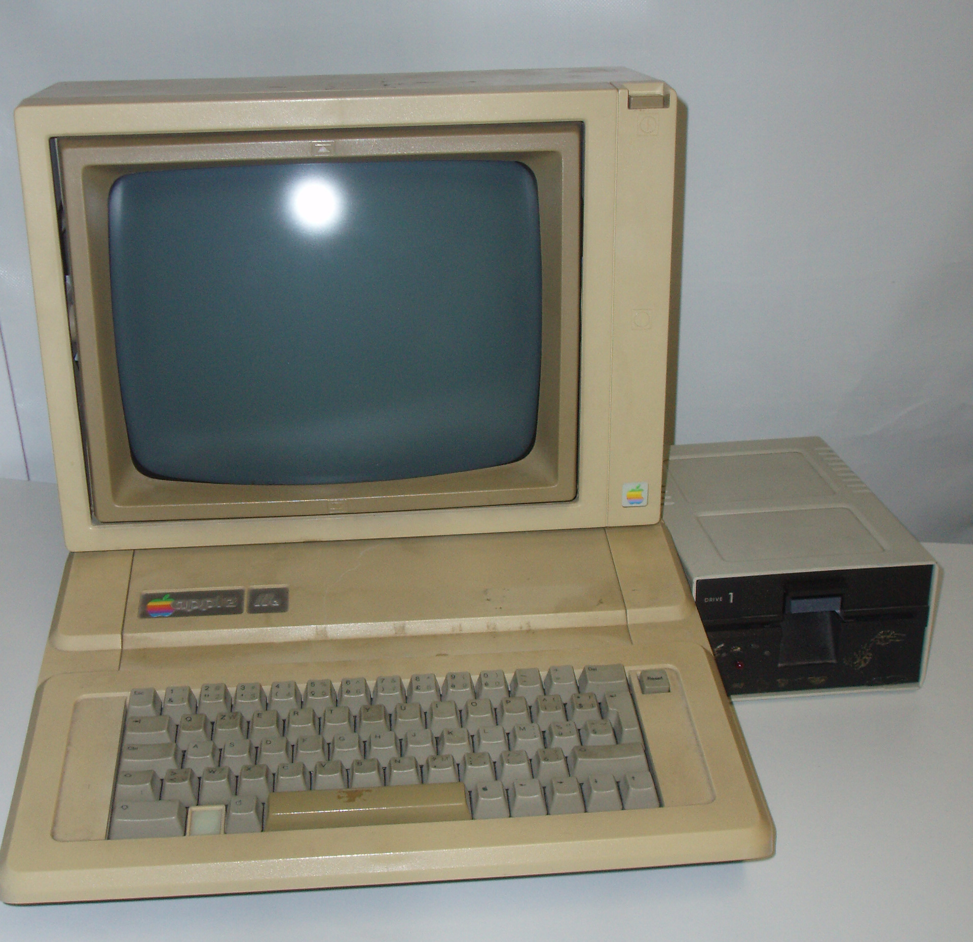 E in effetti quel computer era un Apple, ma al LUG sarebbe servito molto poco, visto che si trattava di un computer del 1982. Un Apple IIe piuttosto malconcio, per la precisione, in compagnia dell’iconico schermo a fosfori verdi ed uno dei lettore floppy da 5"½. Noi li dobbiamo buttare, bisogna liberare spazio per le classi, e a quanto pare non c’è più spazio neanche nel Museo Interattivo del Calcolo, che al tempo aveva sede lì. Accetto volentieri, mi sono rifiutato di lasciar andare al macero un pezzo di storia.